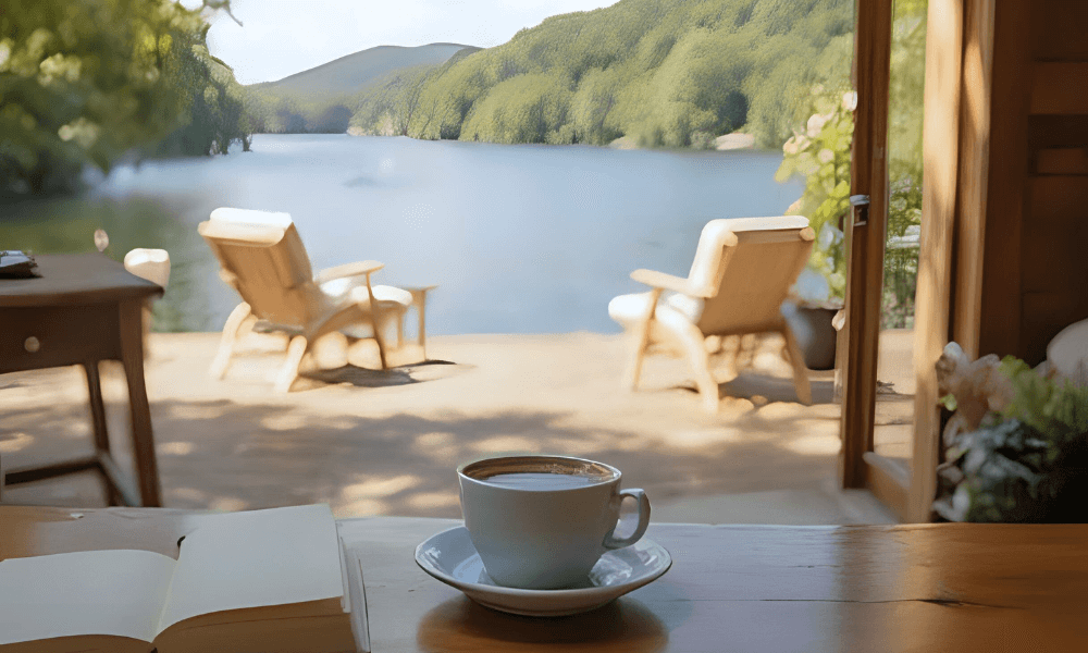 静かな湖のほとりで、朝にカフェオレを飲みながら本を読む生活をしたい