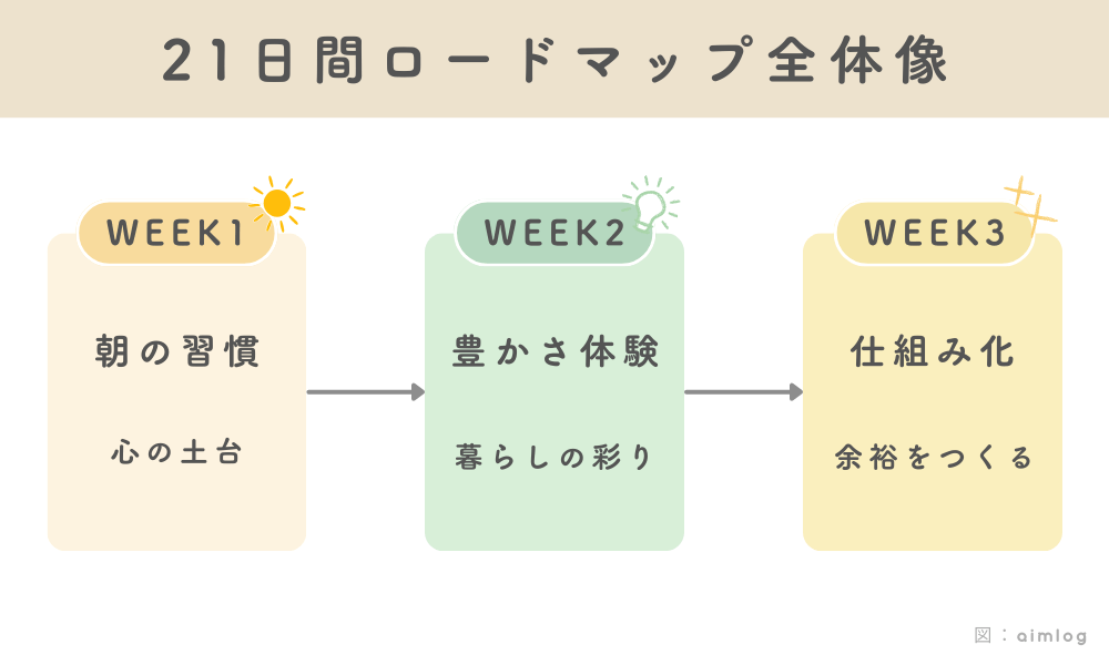 この21日間は「努力してガチガチに頑張る」ものではなく、「暮らしをゆるやかに整えていく」時間です。